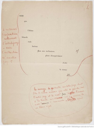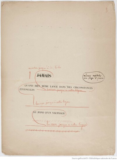 Le texte (composé sur machine à écrire) est annoté des indications typographiques